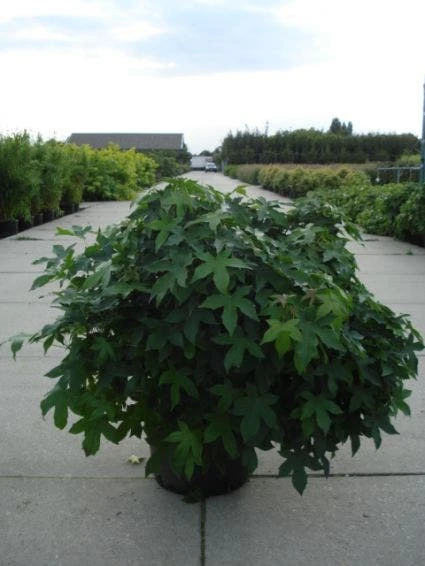 De Amberboom op deze pagina is als struikvorm (bolvorm) opgekweekt.