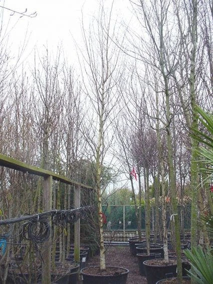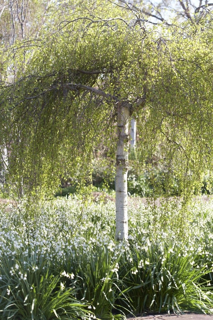 Betula pendula ,de Berk gekweekt als dakboom. Nog niet veel toegepast in de Nederlandse tuinen doordat hij niet veel wordt aangeboden.