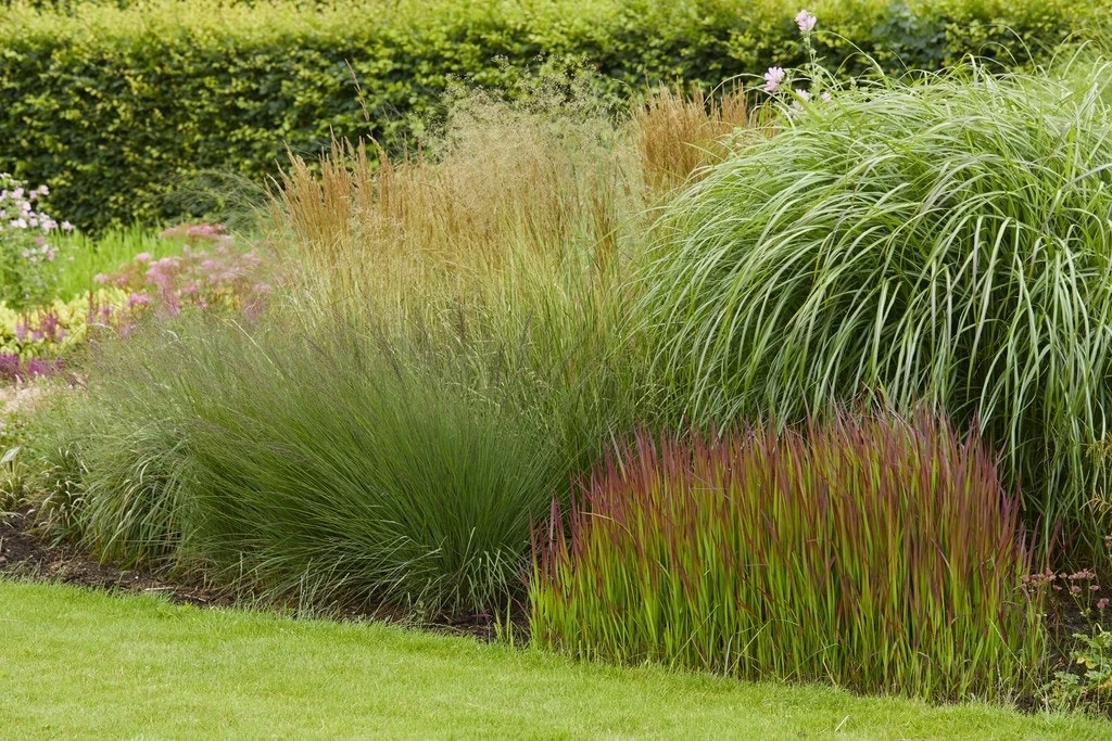Dit borderpakket bestaat uit een selectie van de mooiste siergrassen. Het hogere sierriet vormt een mooie achtergrond en naarmate deze plant oude wordt, buigen de jonge halmen sierlijk door. Het Japans bloedgras geeft een mooi kleuraccent aan de border. De siergrassen border komt het beste tot z’n recht op een zonnige plek, maar ook halfschaduw wordt goed verdragen. Deze border is 2 bij 1 meter.