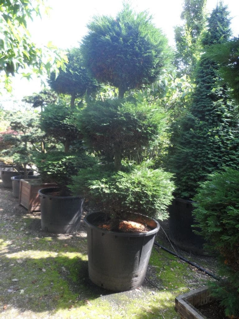 Hier is de conifeer gekweekt als triobol.