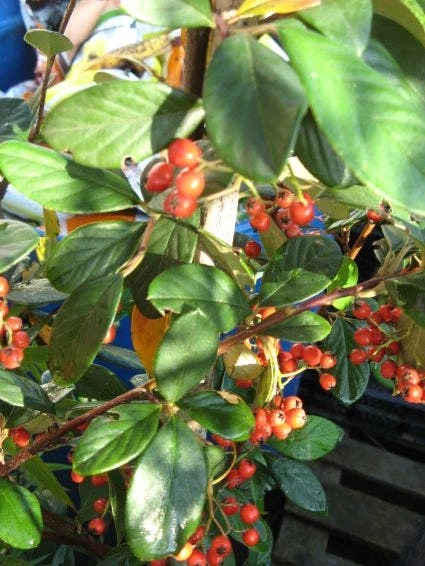Cotoneaster lacteus is een grootbladige dwergsmispel. Het wordt een hoge wintergroene struik.
