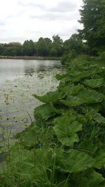 Gunnera manicata is een majestueuze plant die grote groepen bladeren vormt. Uitstekend om aan de oever van een meer of vijver te planten. Een kampioen onder de vaste planten als het om de grootte van de bladeren gaat. Door de gigantische bladeren heeft de plant een grote behoefte aan water. Plant hem op een van je vochtigste plekken in de tuin, in de zon of op een zeer licht schaduwrijke plaats. Verlangt een zure bodem. Zorg dat hij zich aan alle kanten goed kan uitbreiden. De Mammoetblad vormt bladeren tot wel 2 meter groot aan tot 2 meter hoge bladstelen. De staande bloeiwijze van lange, groenrode aren, vaak in juli-augustus, is later liggend.