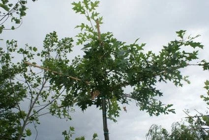 Quercus palustris (moeraseik) krijgt een zeer mooie hefstverkleuring! De moeraseik verdraagt een vochtige standplaats.
