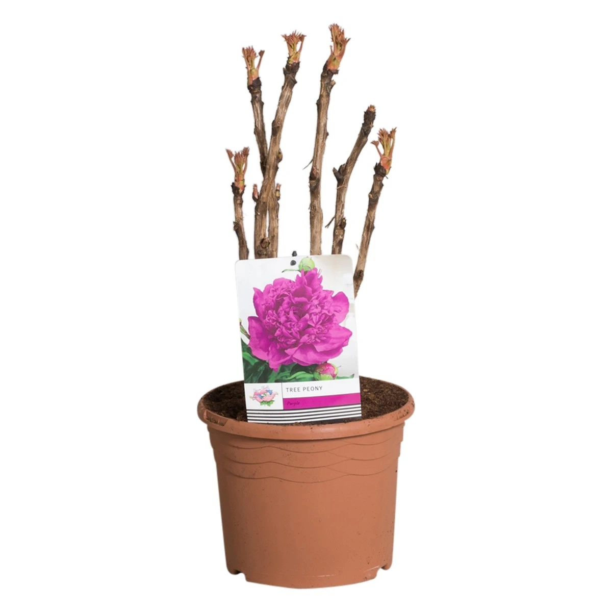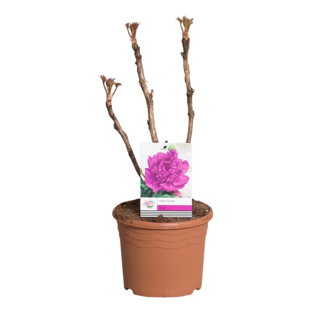 Paeonia suffruticosa of boompioen sterven niet geheel af in de wintermaanden. Dit is een middelgrote, bladverliezende heester. De paarse bloei verschijnt in mei – juni. Pioenrozen staan graag in voedselrijke, goed doorlatende grond. Zo min mogelijk verplanten. Deze niet te diep aanplanten. De bloei kan pas na enekel jaren verschijnen maar is het wachten zeker waard. Een prachtige voorjaarsbloeier!