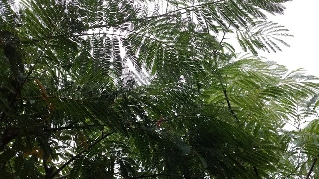 Als het donker wordt vouwen de bladeren van de Albizia julibrissin zich dicht.