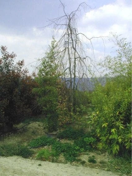 De Treurbeuk heeft takken die in de breedte groeien en jonge takken die hangen.