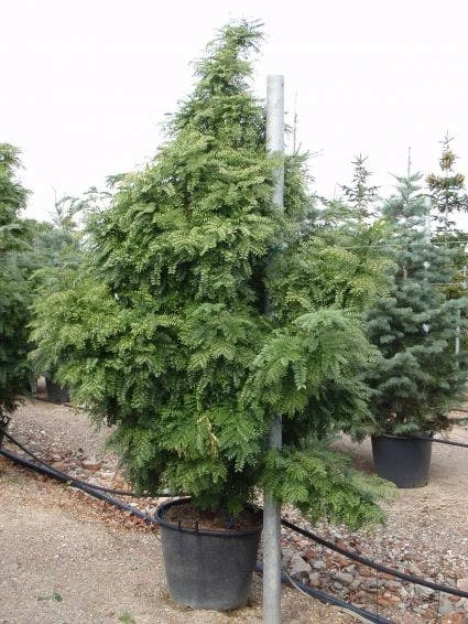 Gleditsia triacanthos ‘Elegantissima’ groeit zuilvormig.
